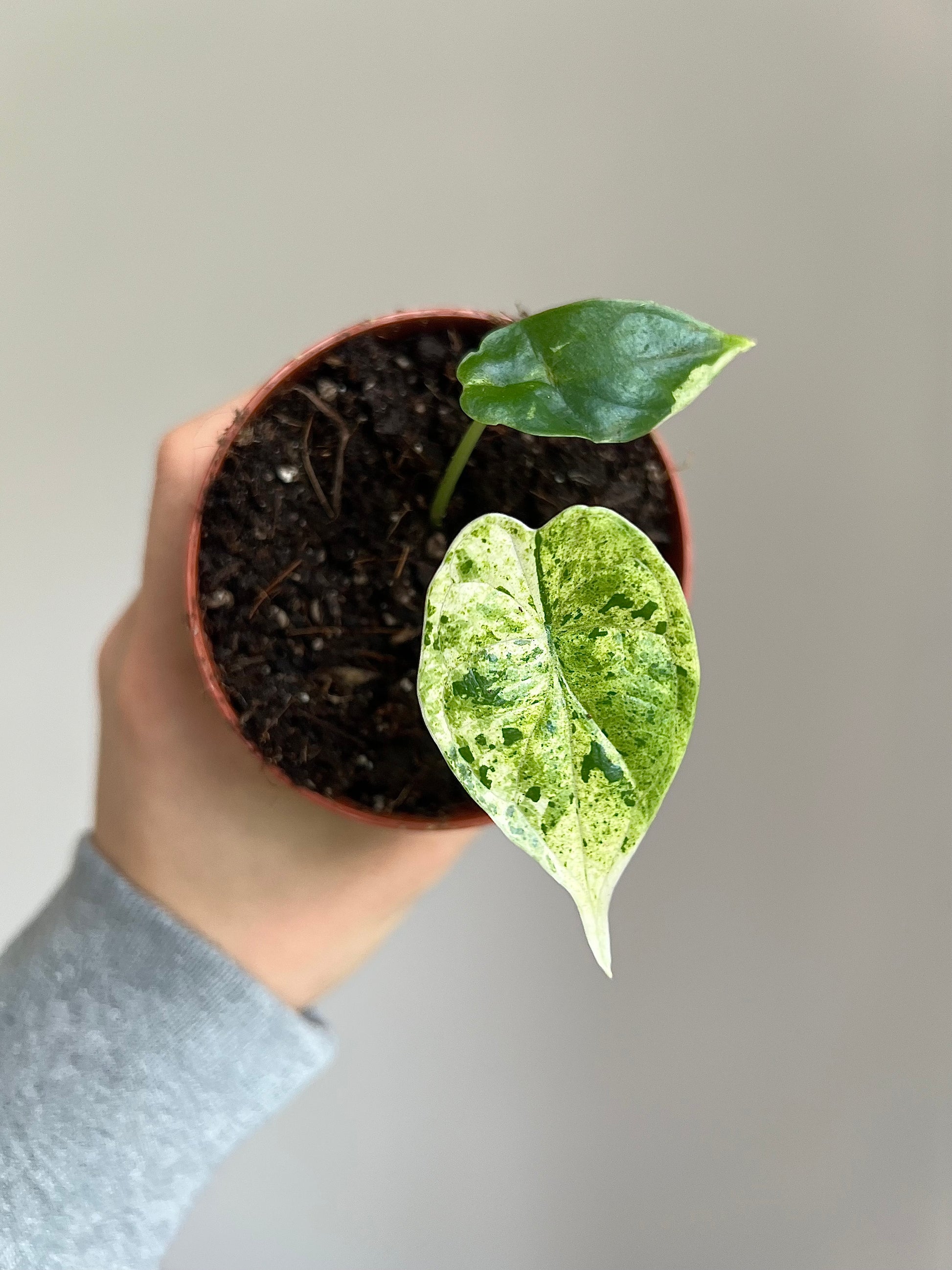 A rare and striking alocasia with its signature dragon-scale leaves in a beautiful minty-green shade. Each leaf has unique veining and natural variation, giving this plant a truly special character.